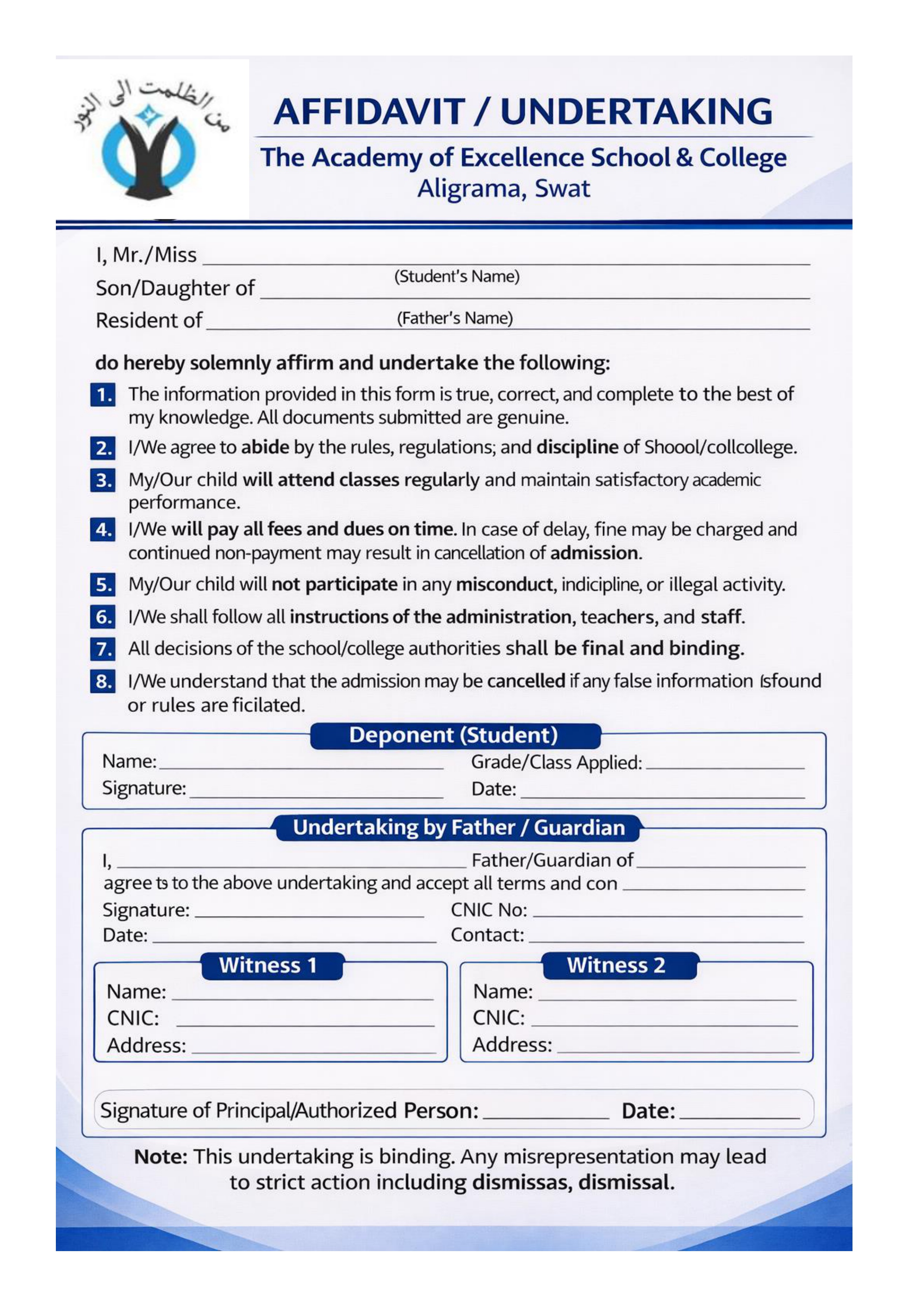 Fill & Submit the form Online OR Download the following forms, properly filled it and send it to the school office. School & College administration will contact you.